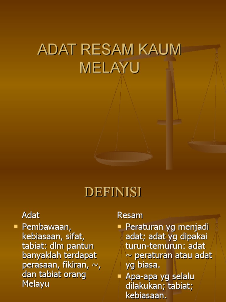 For more information and source, see on this link : For more information and source, see on this link : Adat resam merupakan adat yang diwarisi oleh sesuatu masyarakat secara turun temurun oleh nenek moyang mereka bagi mengekalkan tradisi kaum mereka. Adat resam kaum melayu kelahiran. Kehidupan di malaysia sememangnya terdiri daripada pelbagai kaum dan agama.