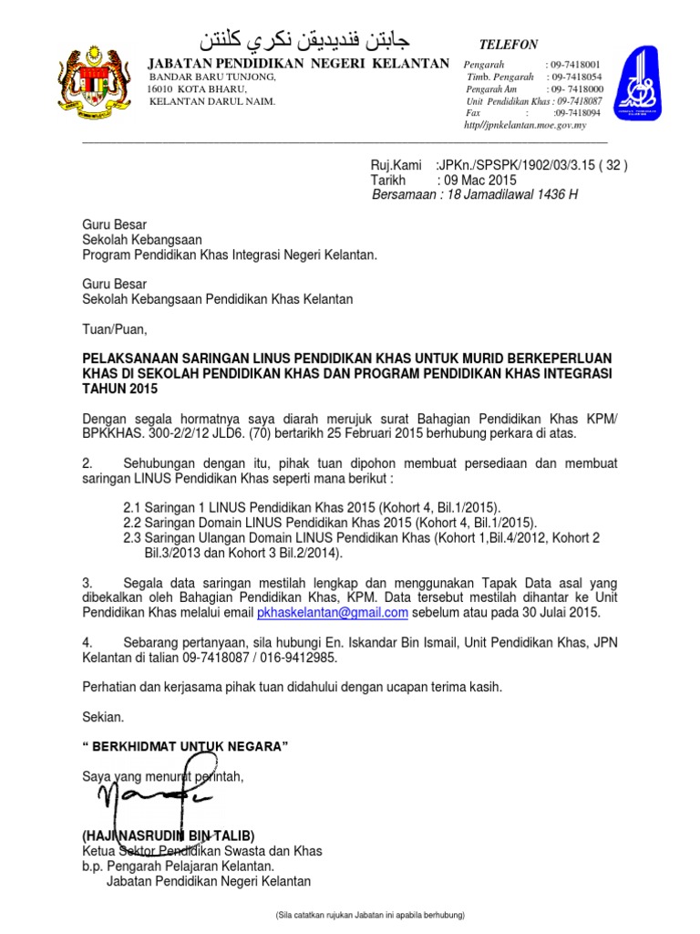 1 from Sekolah di tujuh daerah pkp di kelantan ditutup. Majlis anugerah prasekolah terbilang jabatan pendidikan negeri sembilan tahun 2015. Kebangsaan 2015, kelantan merupakan salah satu negeri. See more of jabatan pendidikan pasti negeri kelantan on facebook. Jabatan pengairan dan saliran negeri kelantan jalan sultan yahya petra,15200, kota bharu, kelantan t (+609) 741 9629 f (+609) 747 8088 penafian jps negeri kelantan tidak bertanggung jawab atas segala kerugian/kerosakan yang disebabkan oleh data yang diperolehi dari laman portal ini. 2 jam 77 kemahiran hidup bersepadu ekonomi rumah tangga set 1. Agensi / jabatan di negeri. Kami warga jabatan pendidikan negeri kelantan dengan penuh tekad dan iltizam berikrar dan berjanji akan menumpukan seluruh tenaga dan usaha kami agar :