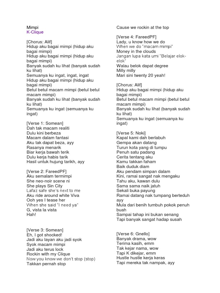 Related : Mimpi Yang Tak Sudah Lirik / K Clique Mimpi Lyrics Genius Lyrics / Mimpi yang tak sudah lirik..